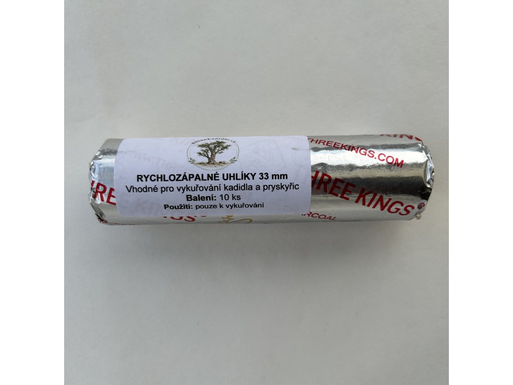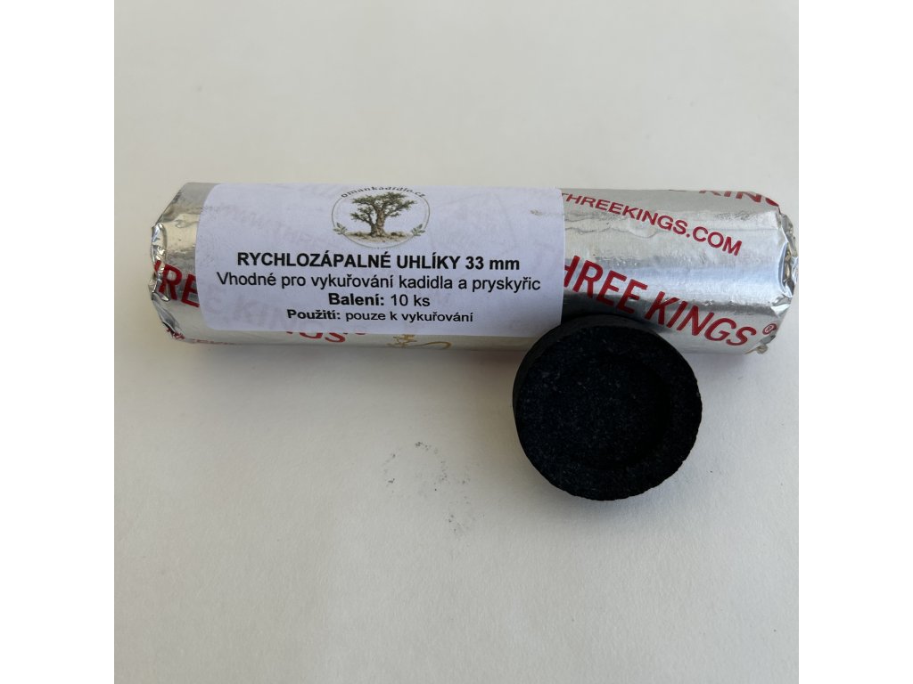 Rychlozápalné uhlíky o průměru 33 mm určené pro tradiční vykuřování kadidla a přírodních pryskyřic.